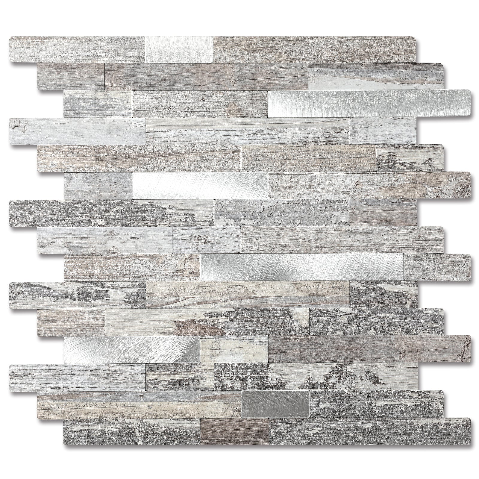 12" X 12" Teakholz-Spritzschutz zum Abziehen und Aufkleben, hochwertige lineare Metall- und Holzfliesenmischung