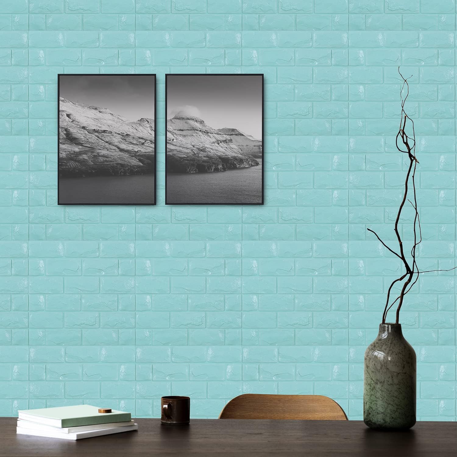 30PCS Blau 3D Wand Panels Peel und Stick Schaum Fliesen Tapete Selbstklebende Faux Ziegel