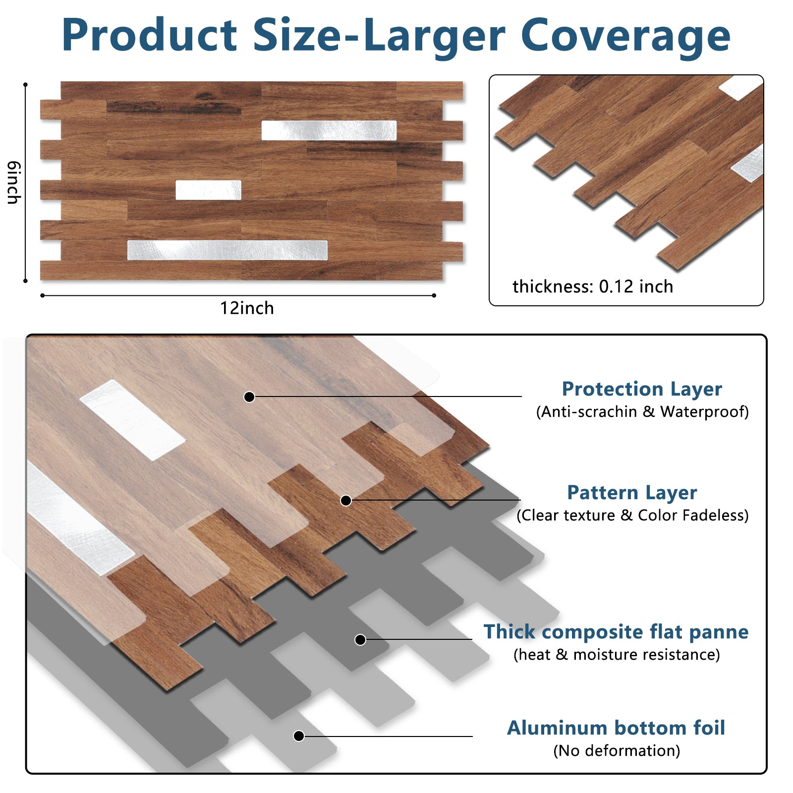 - WATERPROOF & HEAT RESISTANT - Made of PVC composite laminate, Waterproof, heat resistant, stain resistant, anti-scratch, high impact, color fadeless, easy to clean, more durable, and stronger than other plastic self-adhesive tiles.
