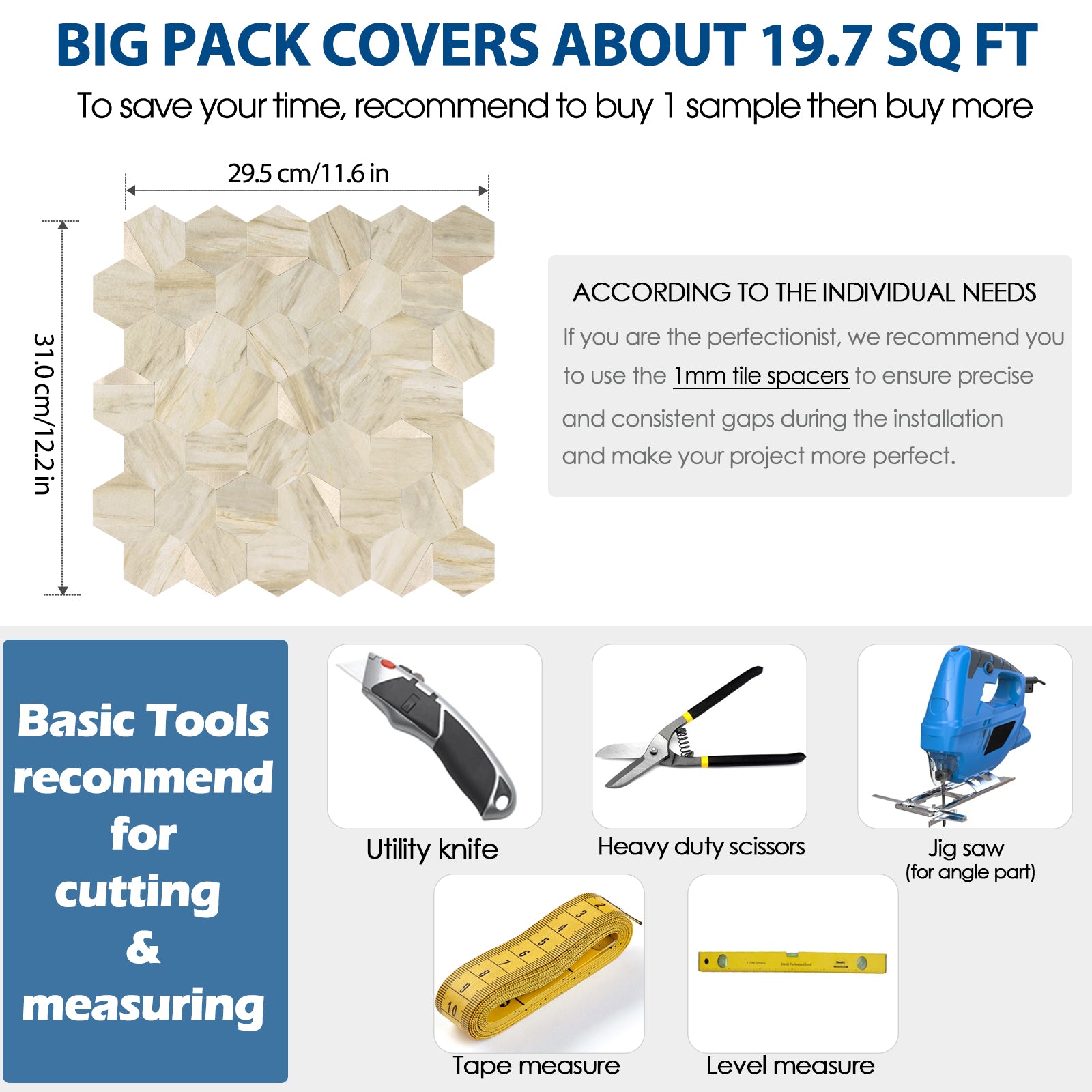 Der Abstand zwischen den einzelnen Fliesen besteht aus 3M-Klebeschaum. Sie können die Fliesen einfach mit einem Universalmesser trennen. Wenn Sie Fliesen schneiden müssen, um eine gerade Kante zu erhalten, verwenden Sie bitte eine gute Industrieschere oder ein Skalpell. Die Rückseite der Fliese besteht aus einer PVC-Verbundschicht, die sich leichter schneiden lässt als die Metalloberfläche.