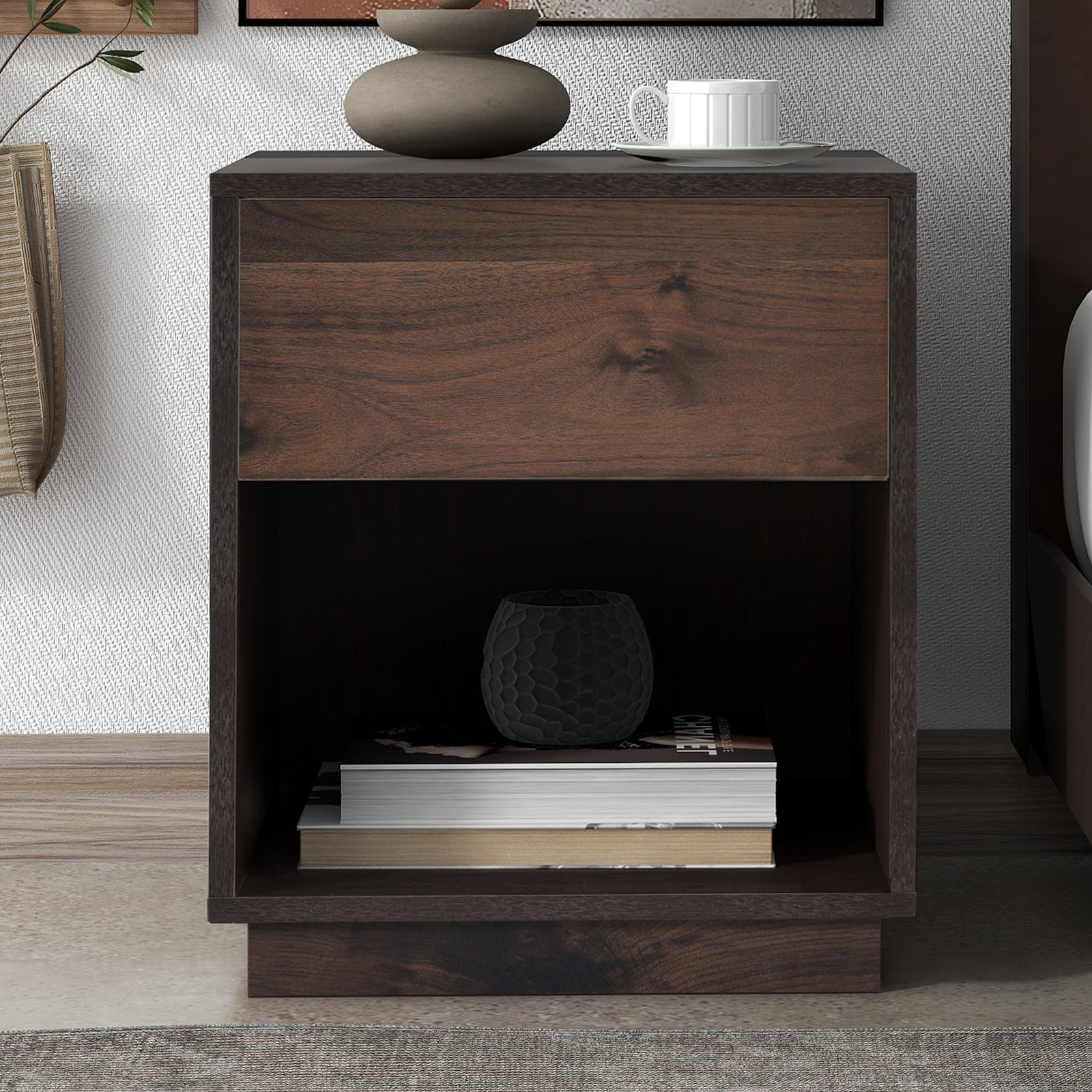 Mid-Century Modern Nightstand End Table Open Storage with One Drawer, Dark Brown