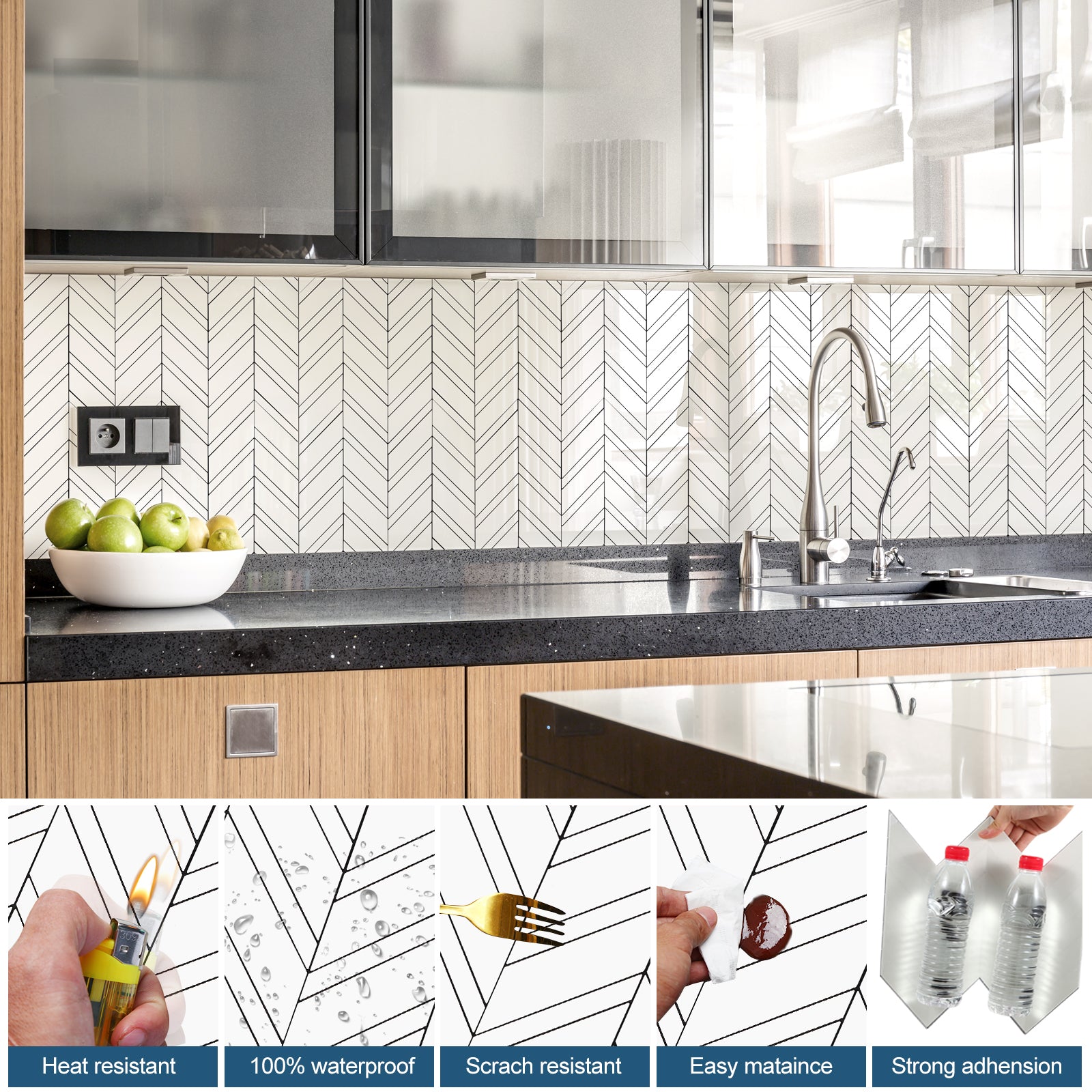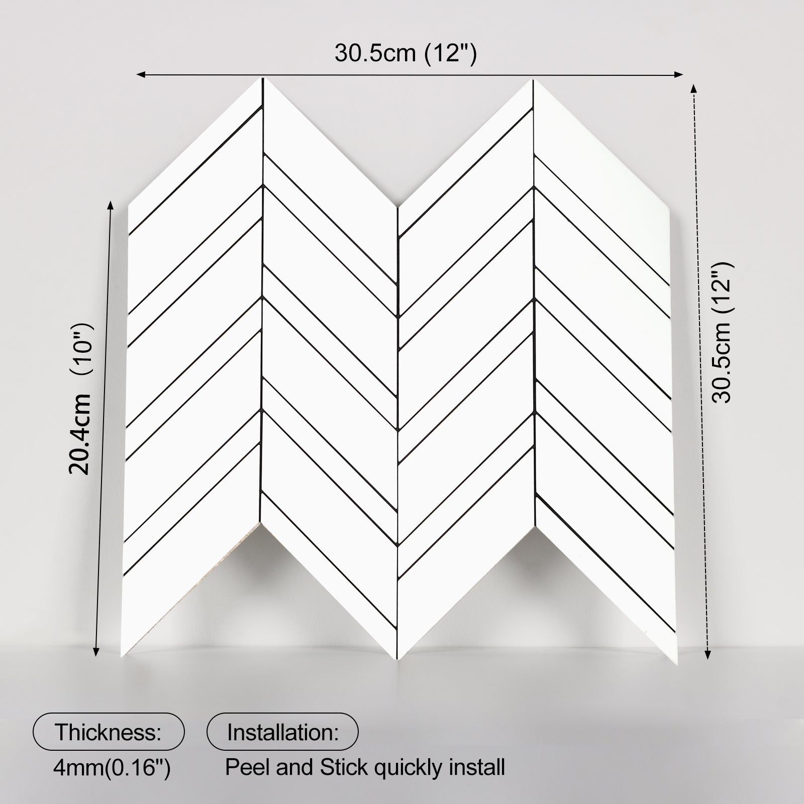 12" X 10" Polished White Herringbone Backsplash Peel and Stick Tile
